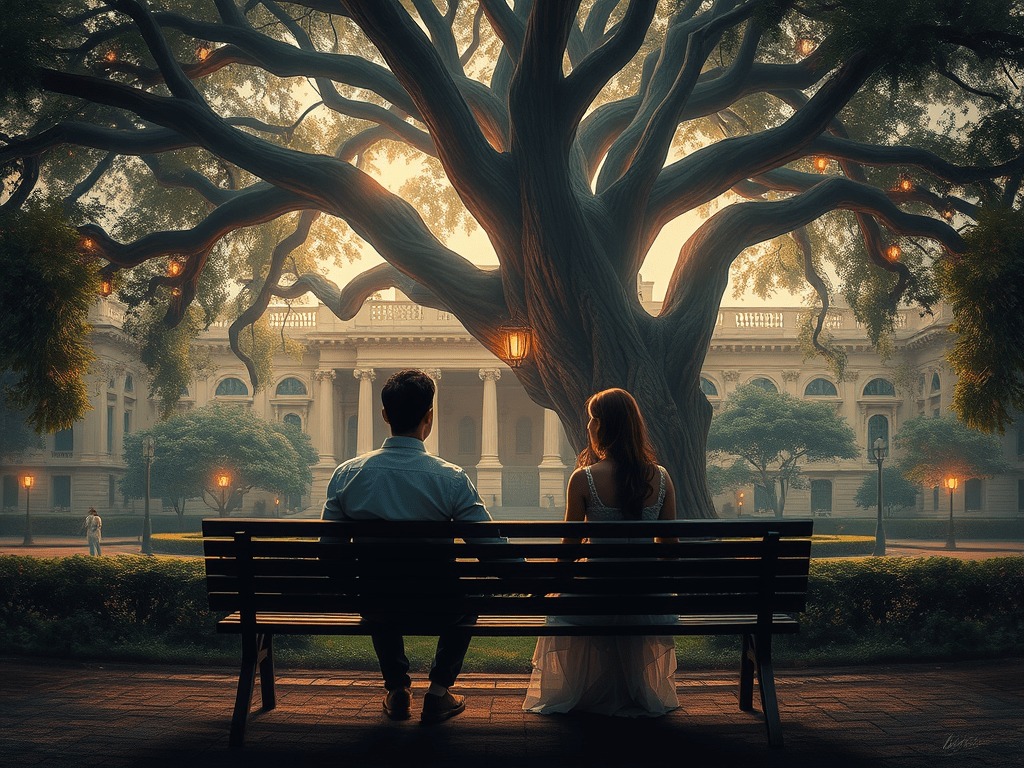 its notes fraying at the edges like old silk.She plucks a fallen banyan leaf,