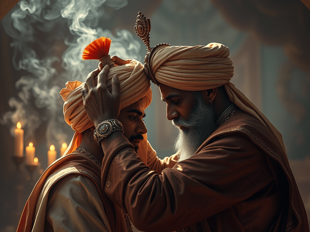 (The Rasm Pagdi (Turban Ceremony) is a significant ritual in many Hindu families, particularly in North Indian communities. During the ceremony, the eldest male’s turban is ceremonially tied onto the head of his successor—often a son or nephew. This is not merely a change of roles; it is a profound passing of the torch. The turban represents family’s honor. It symbolizes the responsibility to care for the family’s well-being and legacy. It also signifies continuity of the unbroken line of tradition and values.)